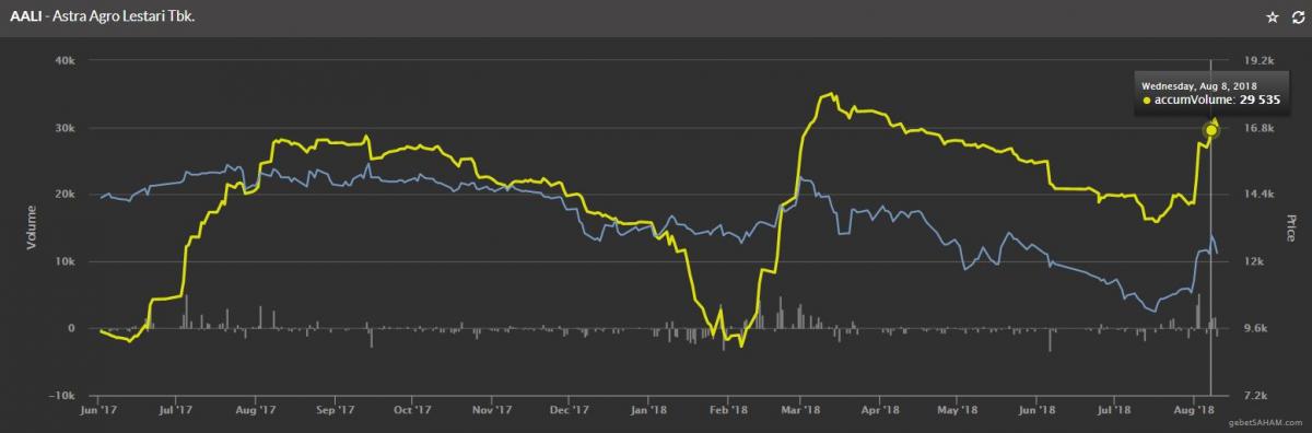 Dalam 3 hari terakhir, secara beruntun SSMS sudah naik +9,2%. Ini adalah buah penantian masa akumulasi yang sangat panjang dari SSMS. Akumulasi sudah dimulai sejak Desember 2017, sementara sejak saat itu harga terus turun. Geliat harga baru muncul tiga hari belakangan ini. Dalam kondisi akumulasi panjang seperti ini, reversal harga seperti ini adalah salah satu momentum untuk entry, jika sebelumnya belum melakukan entry bertahap. Pantau terus garis kuningnya, kondisi masih kondusif untuk bertahap entry sejauh garis kuning masih dalam pola akumulasi.