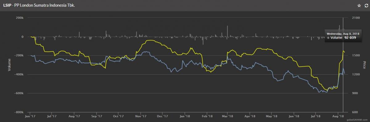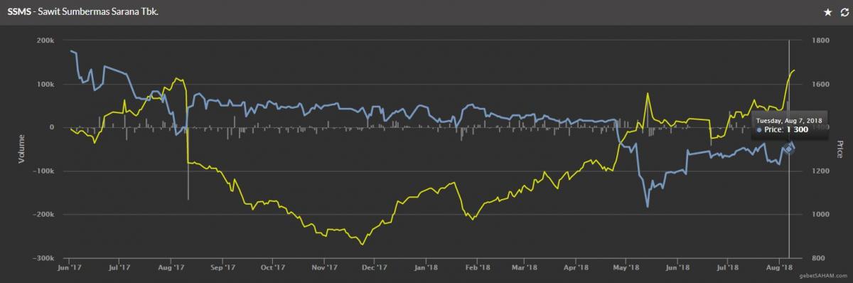 Ini menarik. Diantara sekian emiten sawit, ternyata tidak semuanya memiliki pola garis kuning yang sama. Saya penasaran, kenapa pola akumulasi hanya terjadi pada SSMS. Kenapa para pelaku pasar sudah mengumpulkan saham SSMS sejak Desember 2017. Bahkan, ketika harga sahamnya jatuh pada pertengahan Mei 2018 (bersamaan dengan dihembuskannya berita buruk tentang sektor perkebunan sawit), pelaku pasar tetap mengakumulasi saham ini. Saya kemudian kroscek data statistik kinerja emiten yang diterbitkan IDX (saat itu data yang terpublikasi masih per Juni 2018 dengan posisi laporan keuangan per Maret 2018).